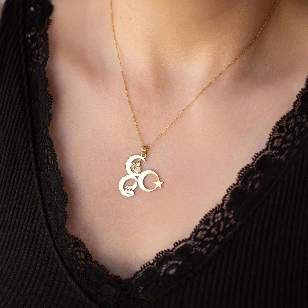 Tarihimizin ve kültürümüzün en önemli üç sembolünü tek bir zarif tasarımda buluşturan bu kolye, güçlü bir duruş ve aidiyet duygusu taşımak isteyenler için tasarlandı.
