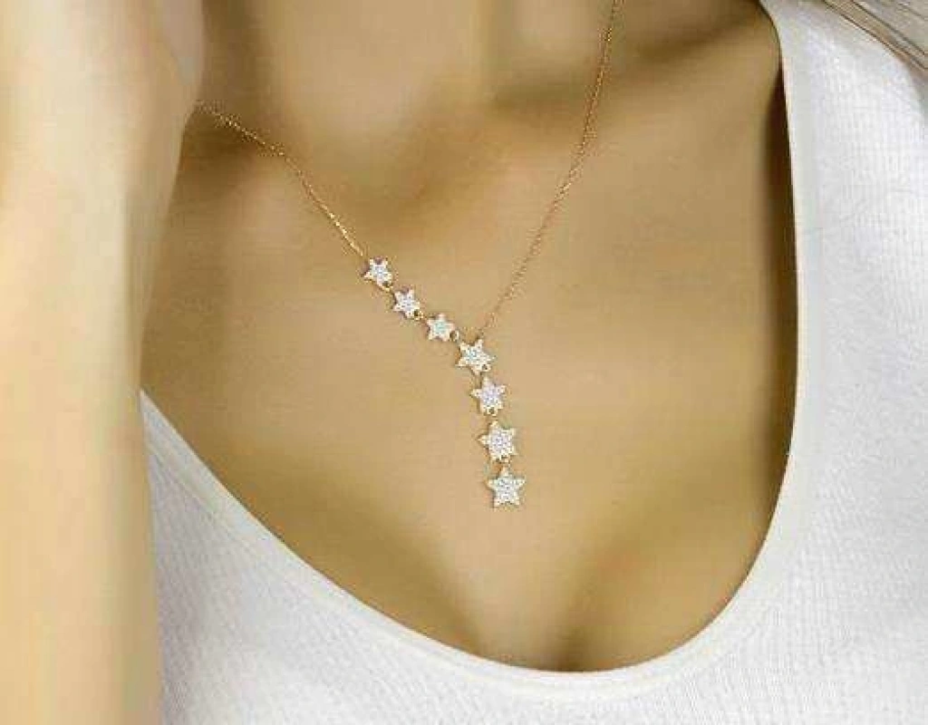 925 Ayar Gümüş Yıldızlar Kolye - Altın