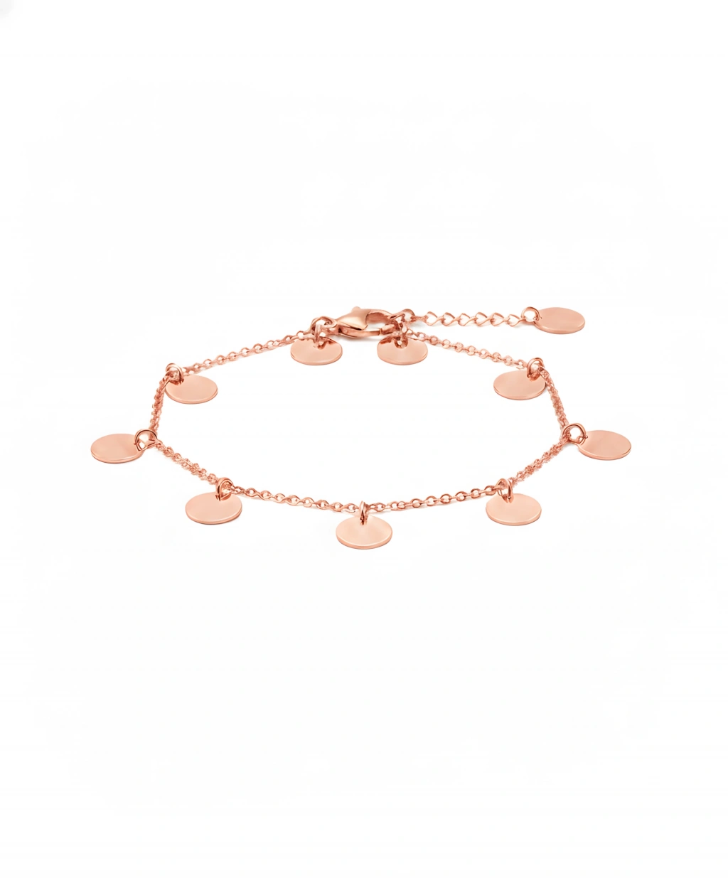 Ayarlanabilir zincir yapısı sayesinde her bilek ölçüsüne uyum sağlayan bu halhal, ister tek başına ister diğer aksesuarlarınızla kombinleyerek kullanabileceğiniz çok yönlü bir parçadır. Işığı yansıtan zarif disk detayları, ayak bileğinizde hareketli ve büyüleyici bir etki yaratır.