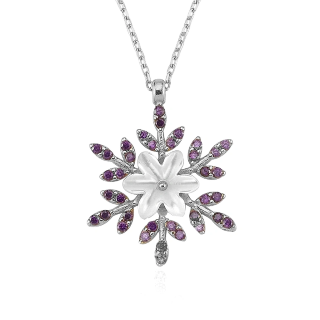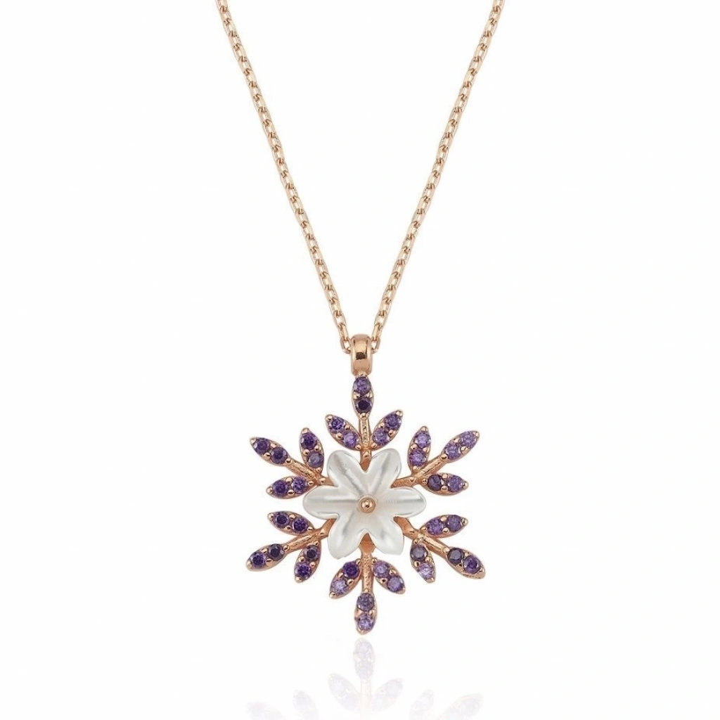 Ametist Taşlı Kar Çiçeği Flowers Gümüş Kolye - Gümüş
