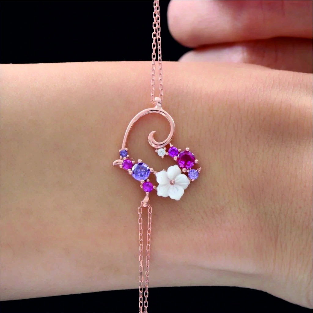Pırlanta Montür Ametist Tacı Rose Renk Flowers Gümüş Bileklik - Altın
