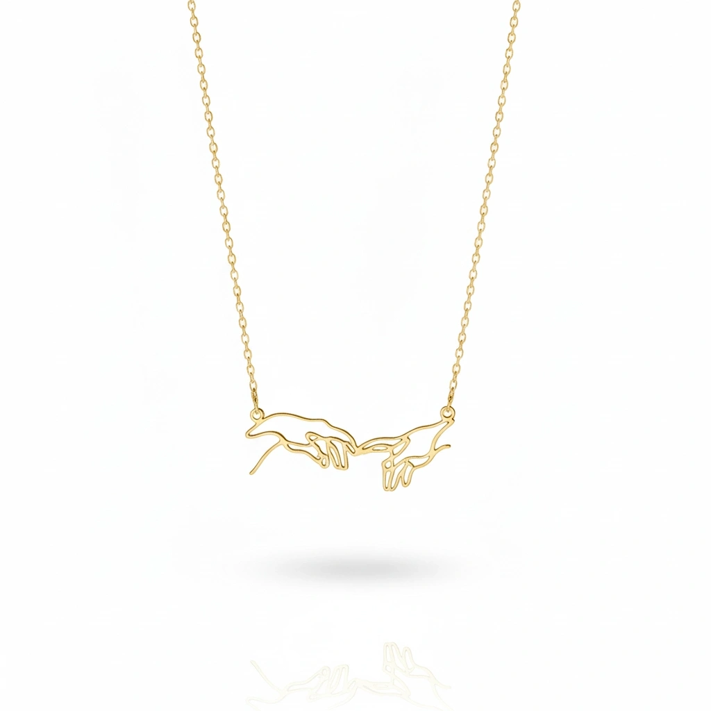 Michelangelo'nun ünlü "Adem'in Yaratılışı" tablosundan ilham alan bu özel tasarım gümüş kolye, iki elin buluştuğu o büyülü anı, zarif bir sanat eseri olarak boynunuza taşıyor. Aşkın, bağlılığın, dostluğun ve insanlık bağının en güçlü sembollerinden biri olan bu kolye, duygularınızı en şık şekilde ifade etmenizi sağlar. İster kendinize ilham verici bir sembol olarak, ister sevdiklerinize derin anlamlar taşıyan bir hediye olarak tercih edin, bu kolye her zaman özel kalacak.