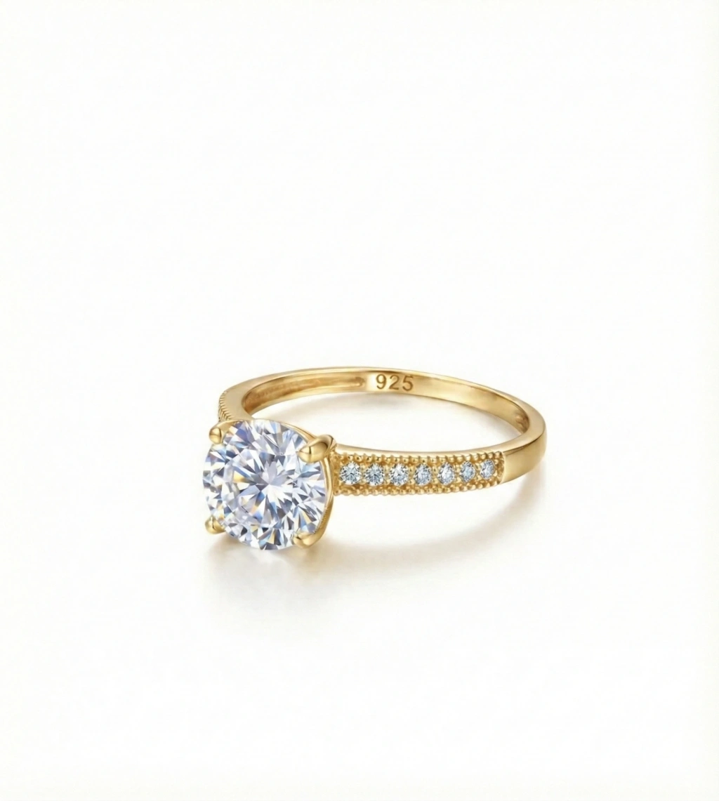 Sıcak Lüksün Simgesi: Sarı Altın Kaplama Pave Tektaş Yüzük