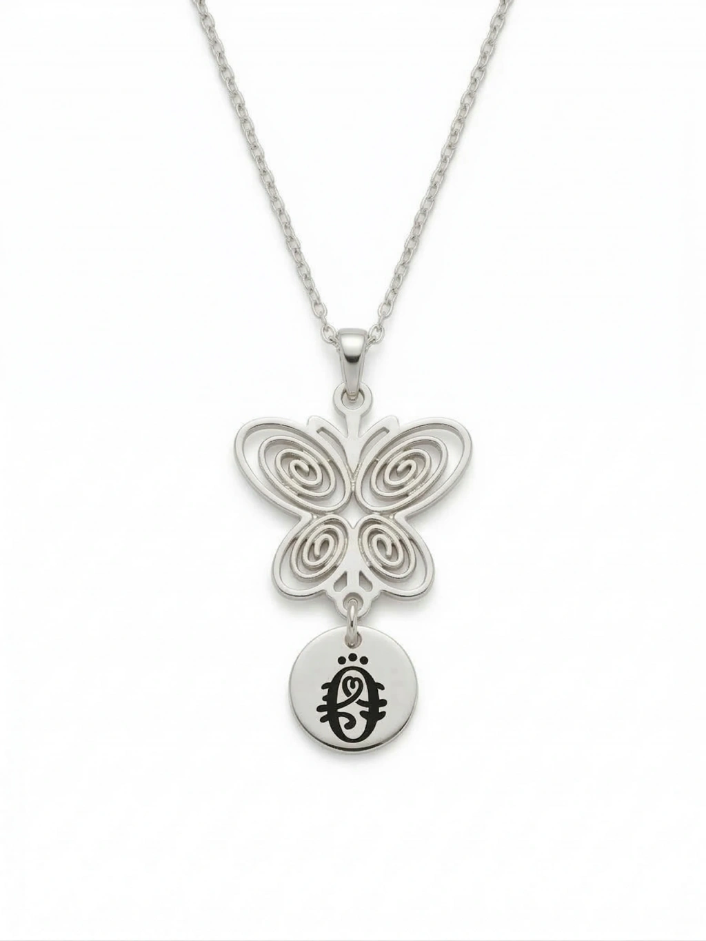 Ürün Açıklaması: Bazı takılar sadece birer aksesuar değil, anlatılmamış hikayelerin sessiz tanıklarıdır. Füsun modeli, kanatlarındaki ince sarmal işçiliği ve altındaki mühür detaylı diskiyle sadakati ve zarafeti simgeliyor. 925 ayar gümüşün duruluğu, bu tasarımı hem gündelik hem de en özel anlarınız için zamansız bir parça kılıyor.