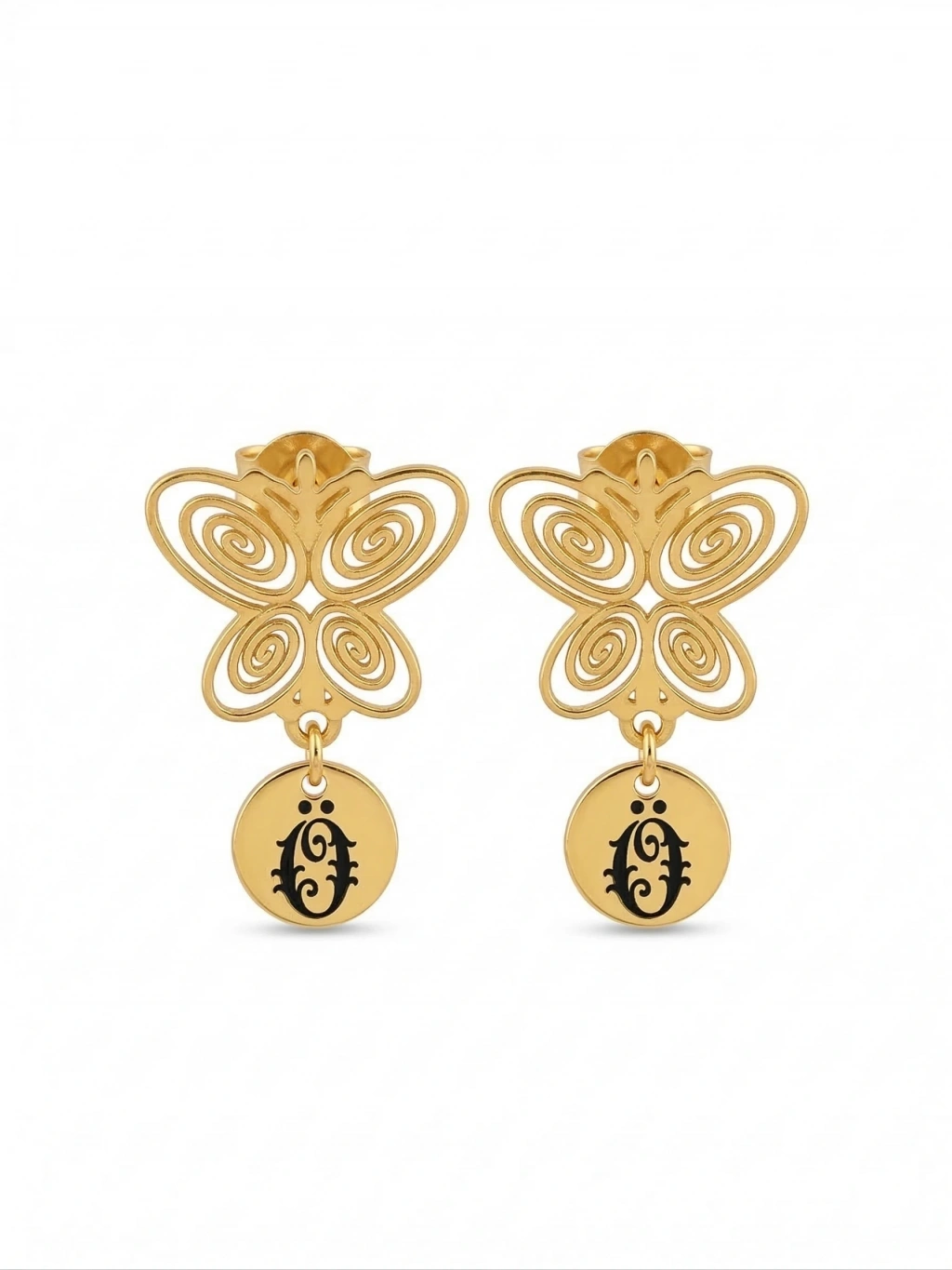 Eski İstanbul'un o sıcak, güneşli ikindilerinde yaşanan derin bir sevdanın izlerini taşıyan bir tasarım. Füsun'un o efsanevi silüetini tamamlayan bu altın kaplama gümüş küpe, vintage ruhunu modern bir zarafetle günümüze taşıyor. Altının o iç ısıtan, kalıcı tonu, yaşanan büyük duyguların yıllara nasıl meydan okuduğunu simgeliyor. Kelebeğin zarif kanat kıvrımları ve altındaki klasik monogramı, geçmişin ağırbaşlı şıklığını arayanlar için tasarlandı. Bu küpeyi her taktığınızda, o nostaljik romanın sayfaları arasında, Çukurcuma sokaklarında zarif bir yürüyüşe çıkmış gibi hissedeceksiniz.