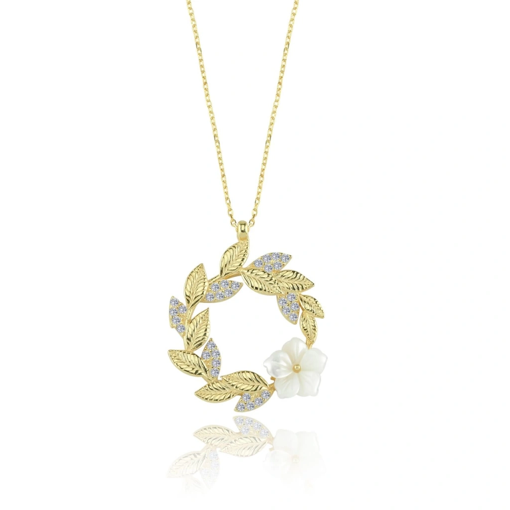 Gelin Buketi Manolya Çiçeği Flowers Gümüş Kolye - Altın