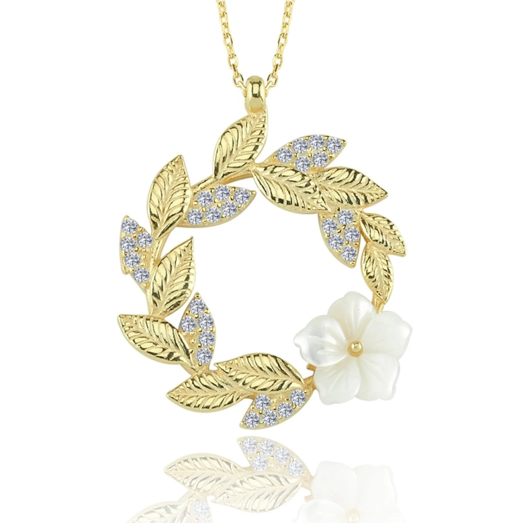 Gelin Buketi Manolya Çiçeği Flowers Gümüş Kolye