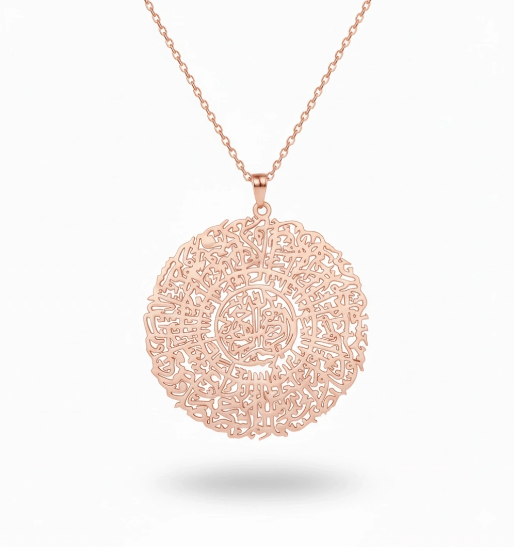 Zarif Tasarım: İnce işçilikle yuvarlak formda işlenmiş sure metni, göz kamaştırıcı bir desen oluşturur. Her bir harf, adeta bir sanat eserini andırır.