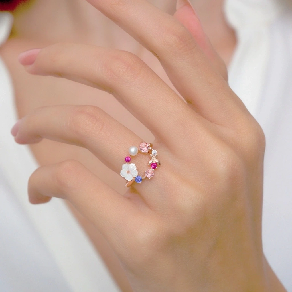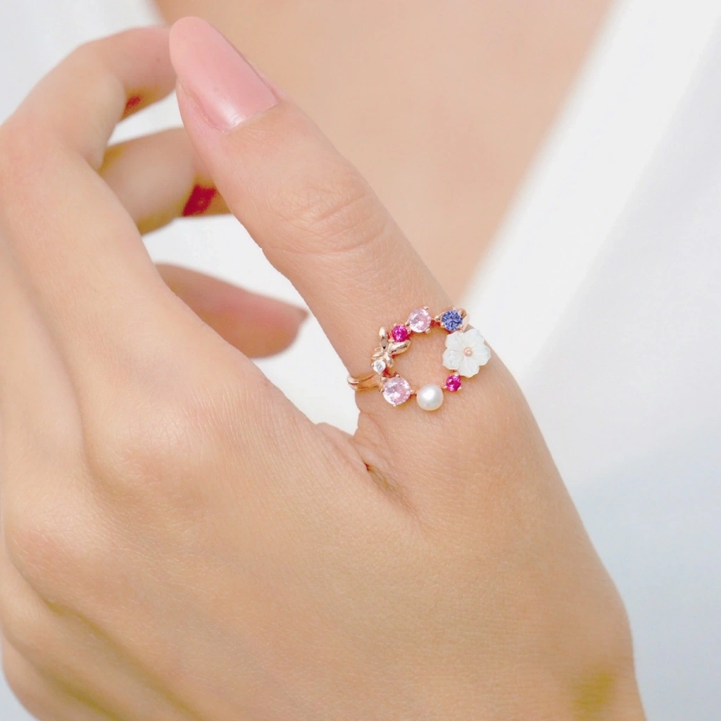 Bahar Bahçesi Manolya Çiçeği Flowers Gümüş Yüzük - Rose