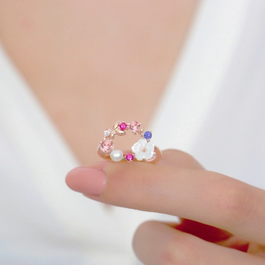Bahar Bahçesi Manolya Çiçeği Flowers Gümüş Yüzük - Rose