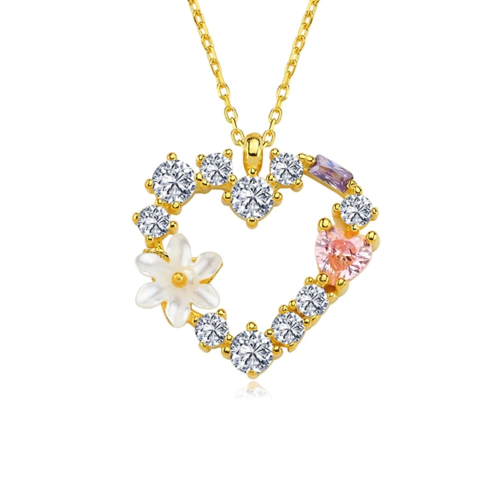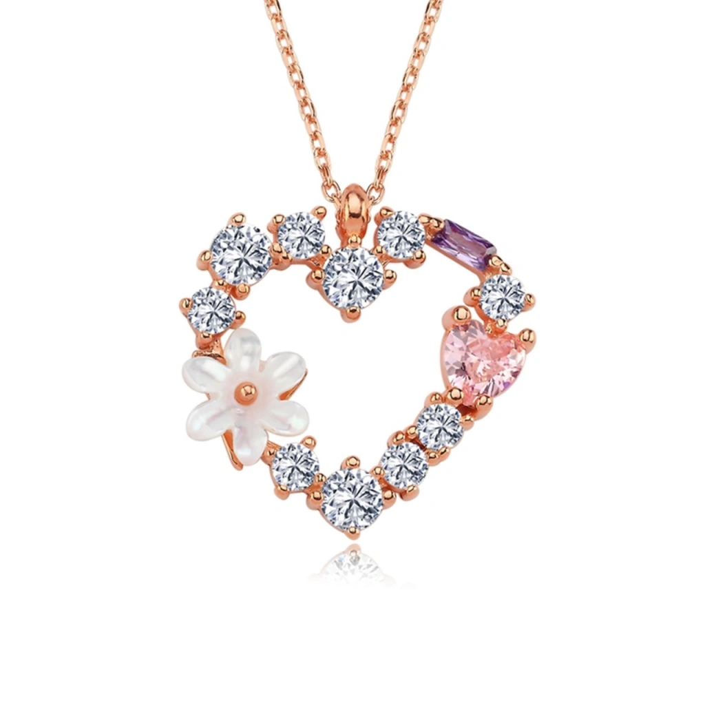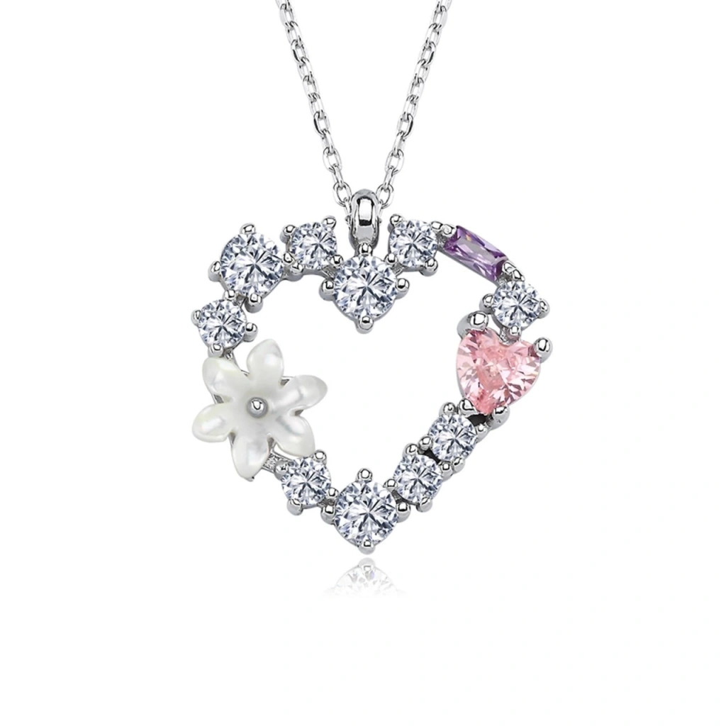 Işıltılı Kalp Tutkusu Manolya Çiçeği Flowers Gümüş Kolye