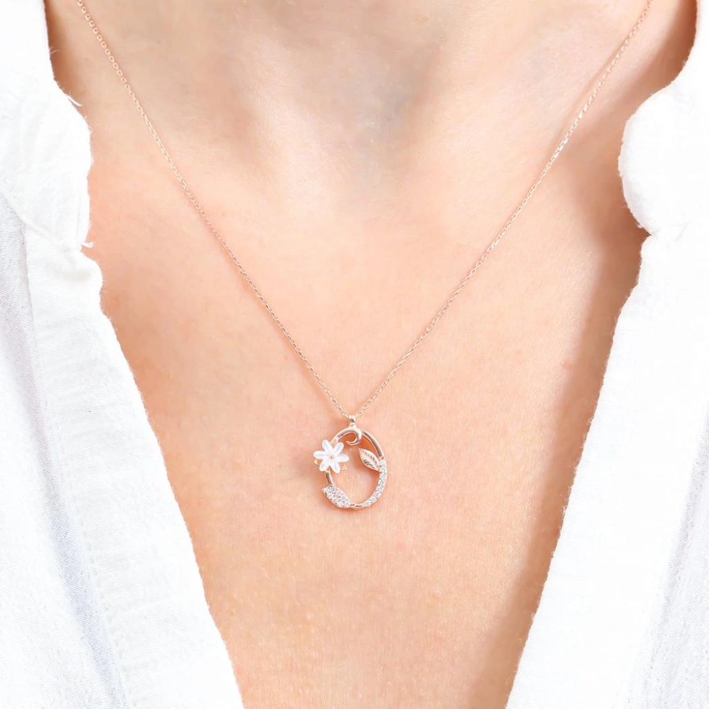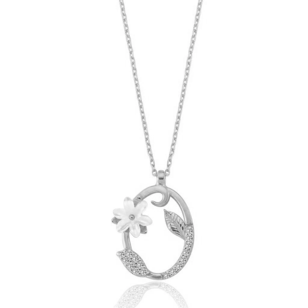 Işıltılı Manolya Çiçeği O Harfi Gümüş Harfli Kolye