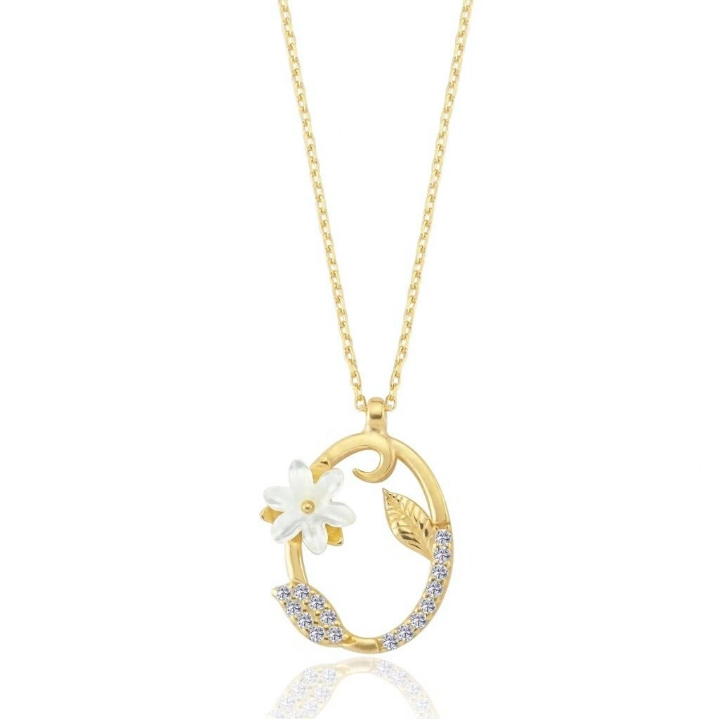 Işıltılı Manolya Çiçeği O Harfi Gümüş Harfli Kolye - Altın