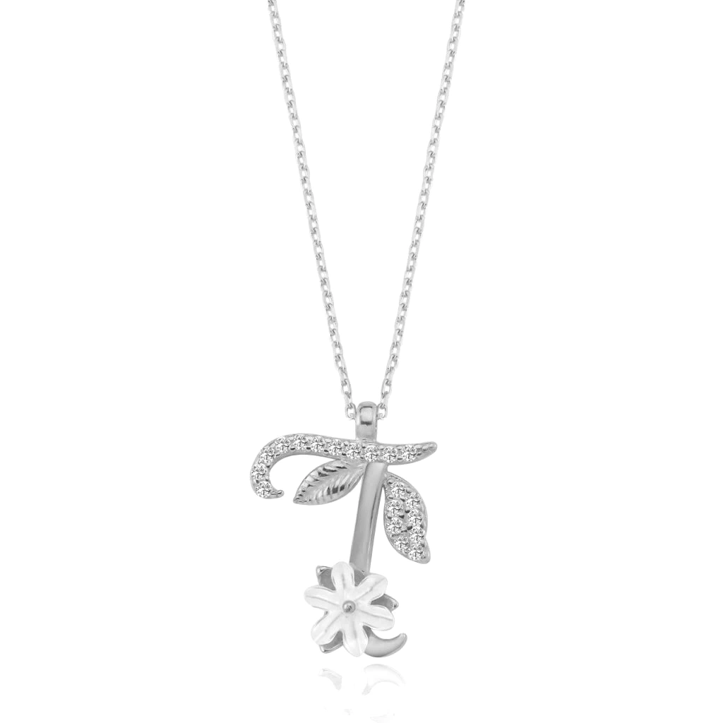 Işıltılı Manolya Çiçeği T Harfi Gümüş Harfli Kolye - Gümüş