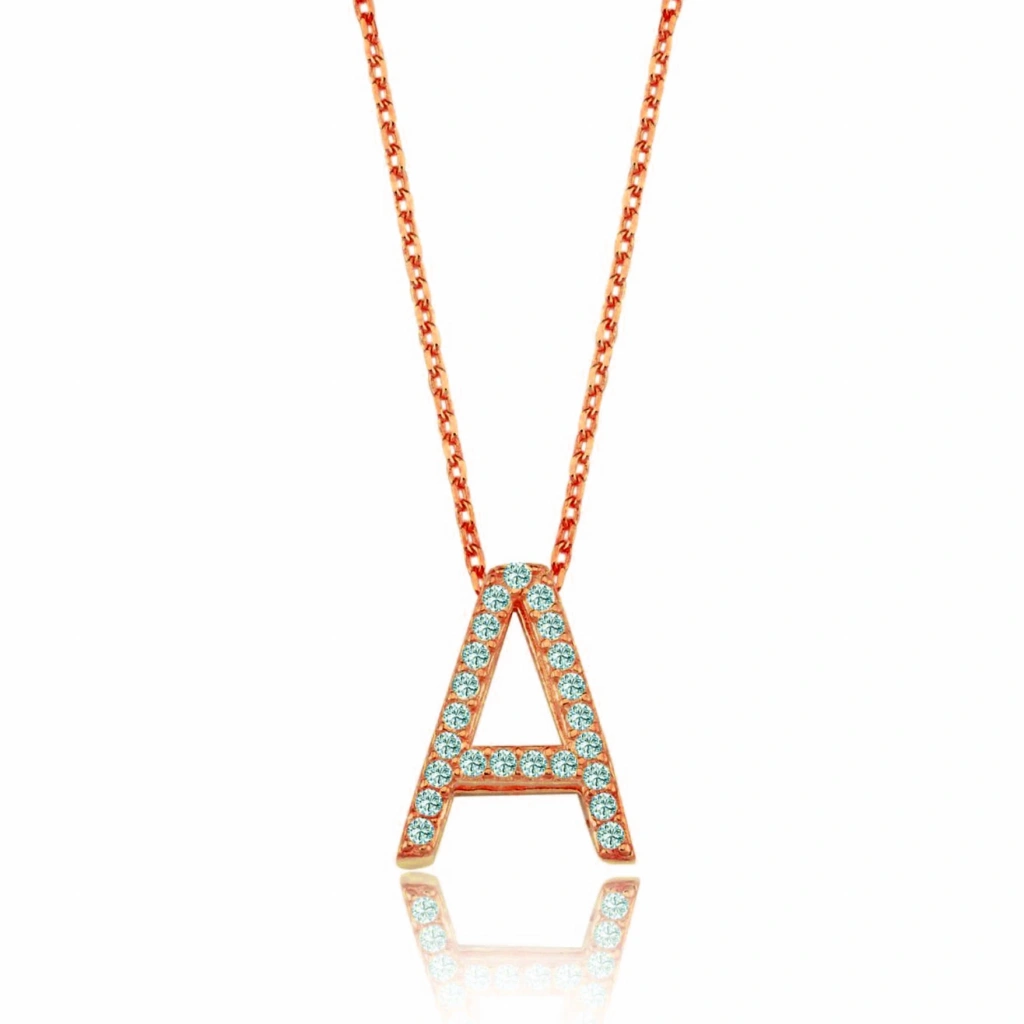 Işıltılı Prizma A Harfi Gümüş Kolye - Rose