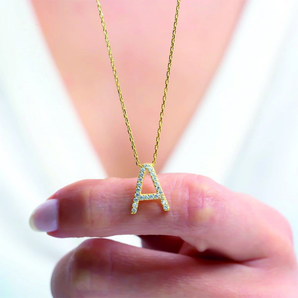 Işıltılı Prizma A Harfi Gümüş Kolye