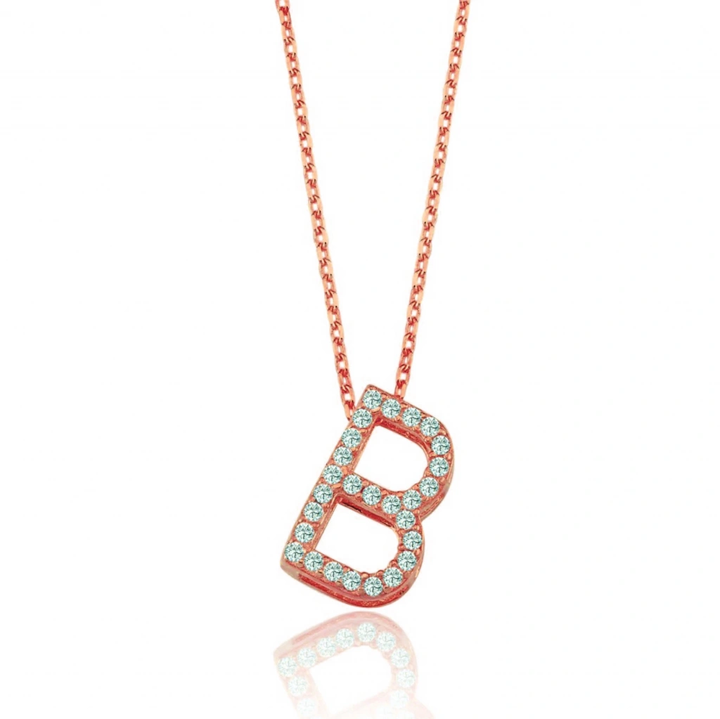 Işıltılı Prizma B Harfi Gümüş Kolye - Rose