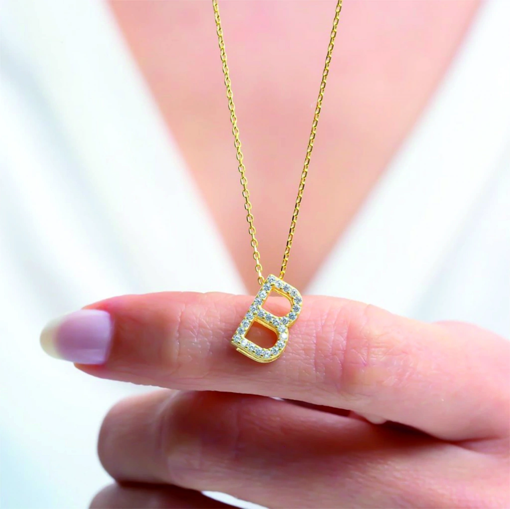 Işıltılı Prizma B Harfi Gümüş Kolye