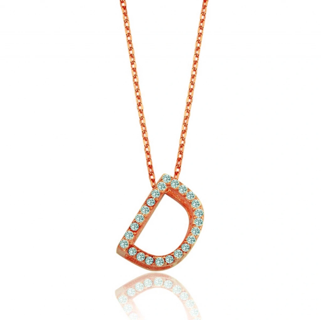 Işıltılı Prizma D Harfi Gümüş Kolye - Rose