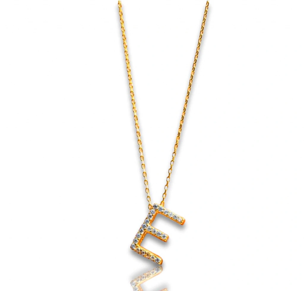 Işıltılı Prizma E Harfi Gümüş Kolye - Altın