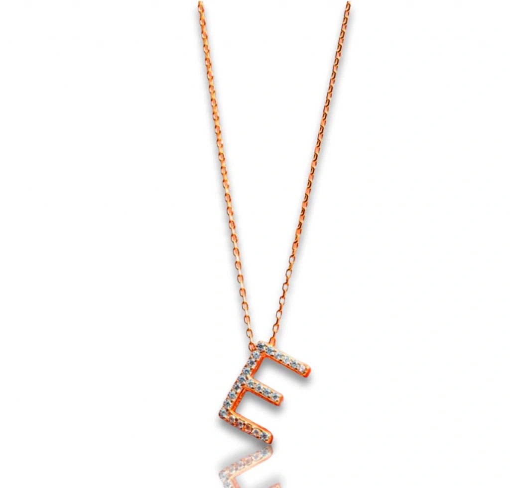 Işıltılı Prizma E Harfi Gümüş Kolye - Rose