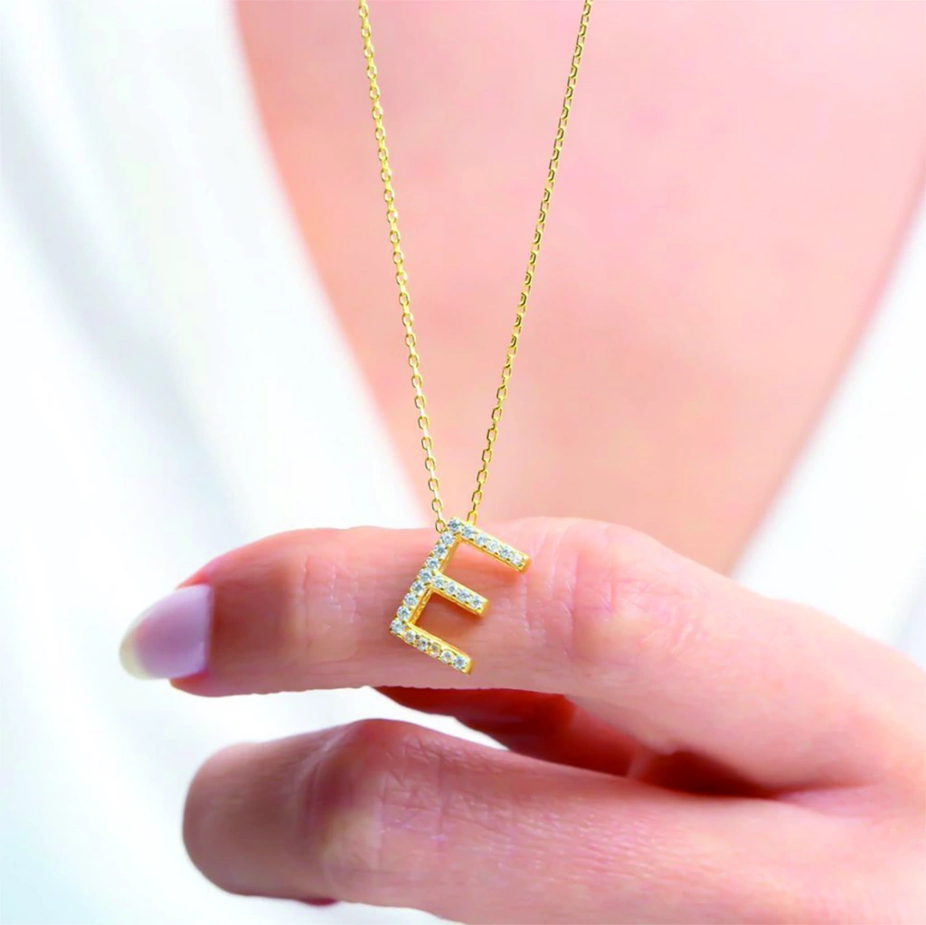 Işıltılı Prizma E Harfi Gümüş Kolye