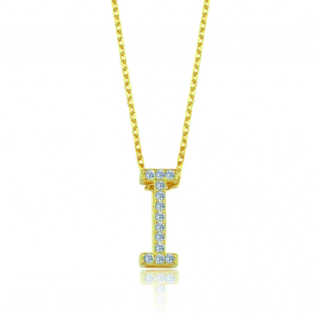 Işıltılı Prizma I Harfi Gümüş Kolye - Altın