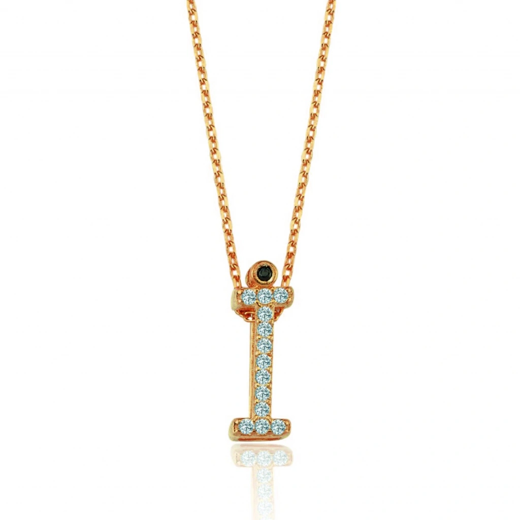 Işıltılı Prizma İ Harfi Gümüş Kolye - Rose