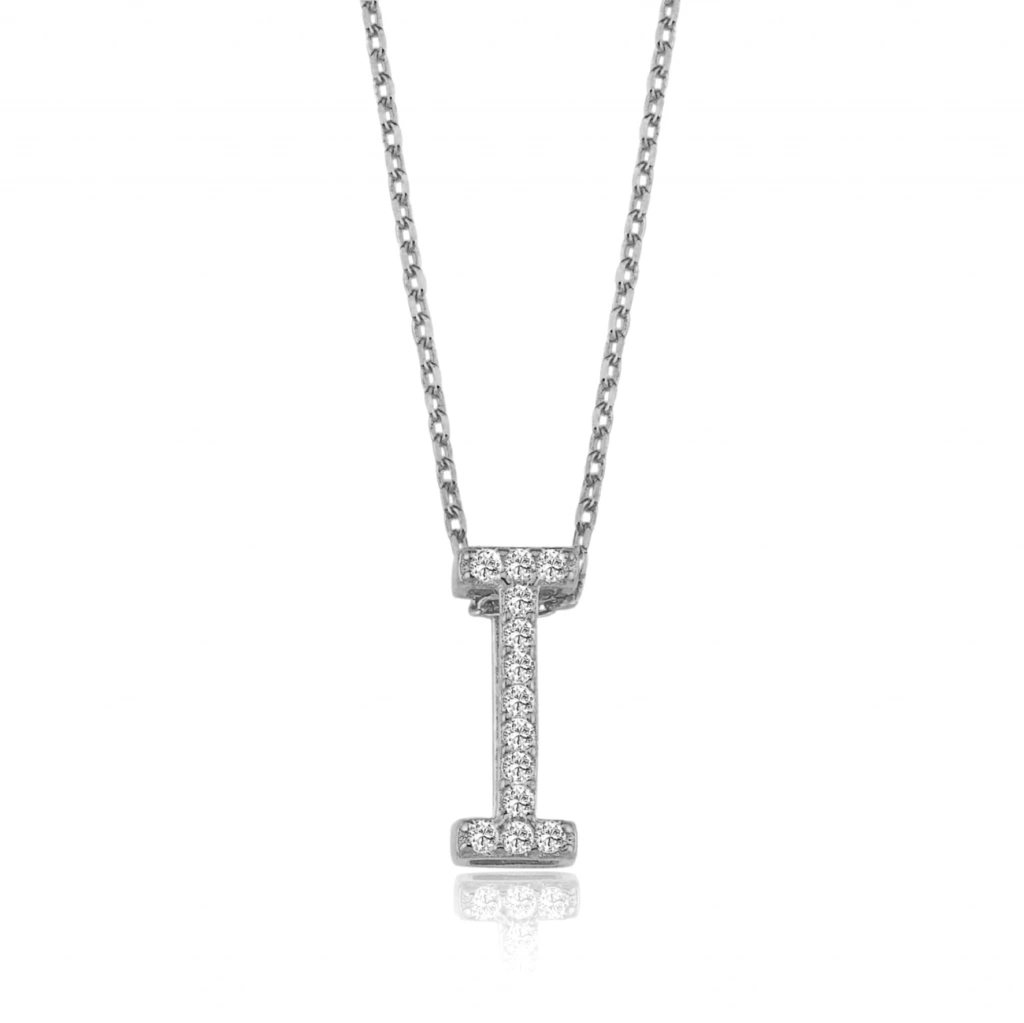 Işıltılı Prizma I Harfi Gümüş Kolye
