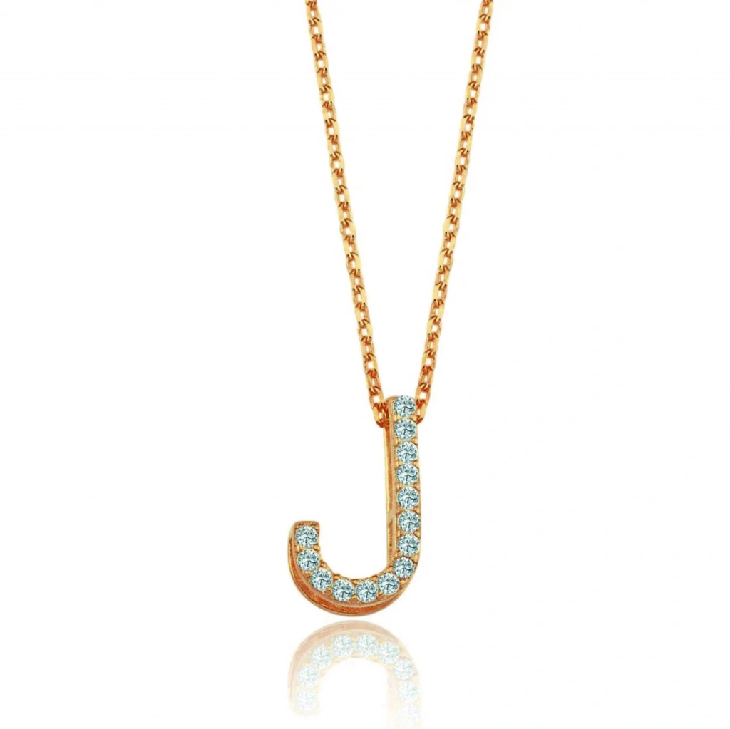Işıltılı Prizma J Harfi Gümüş Kolye - Rose