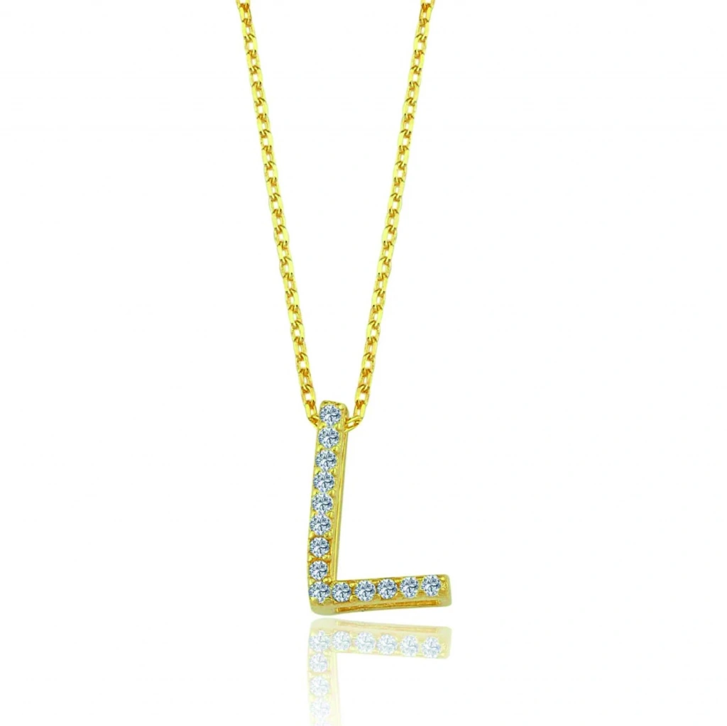 Işıltılı Prizma L Harfi Gümüş Kolye - Altın