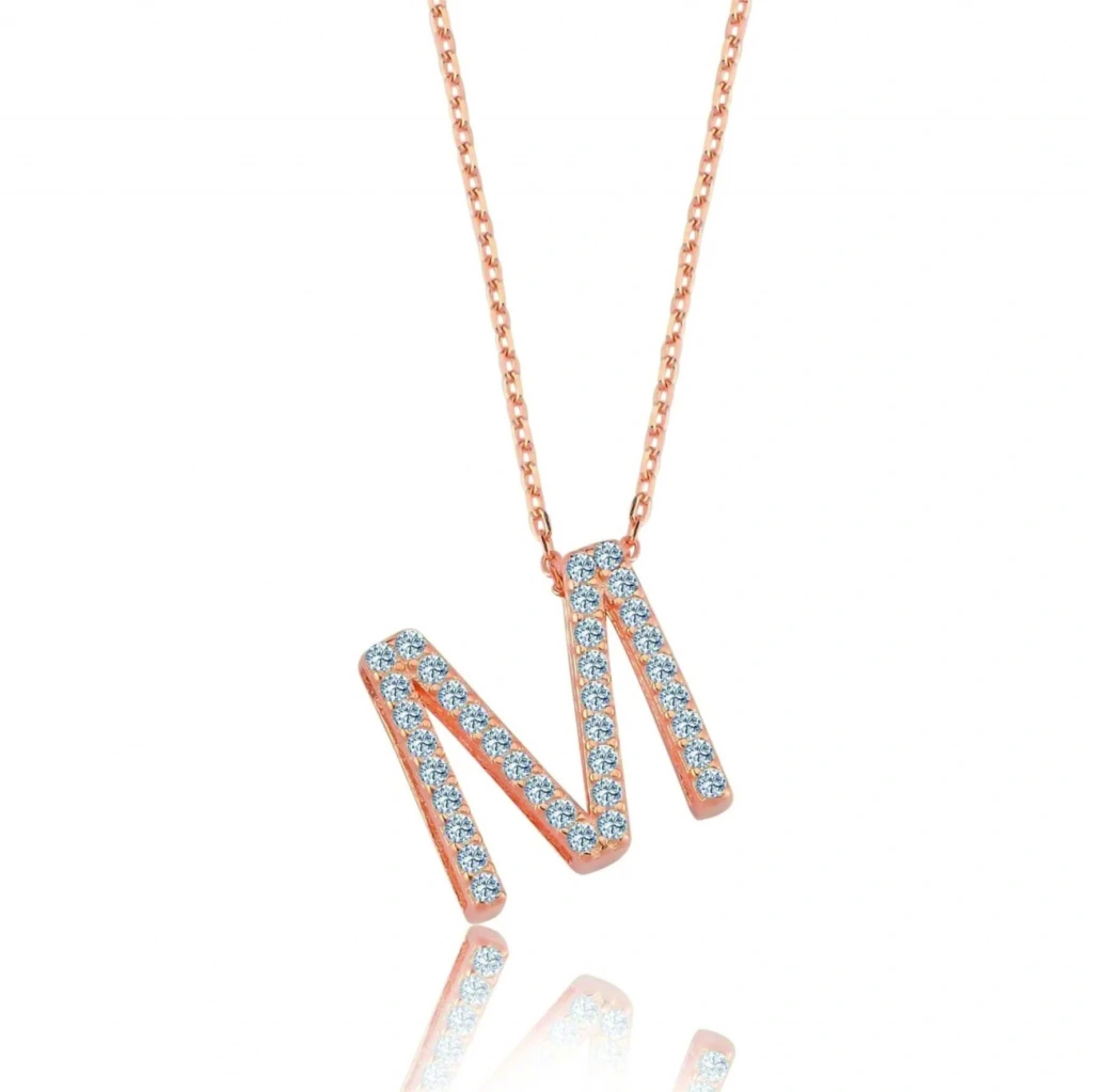 Işıltılı Prizma M Harfi Gümüş Kolye - Rose