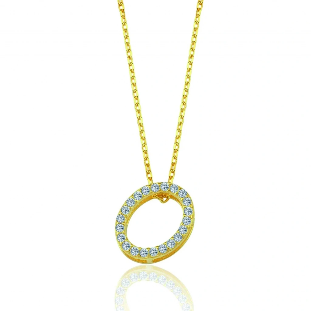 Işıltılı Prizma O Harfi Gümüş Kolye - Altın