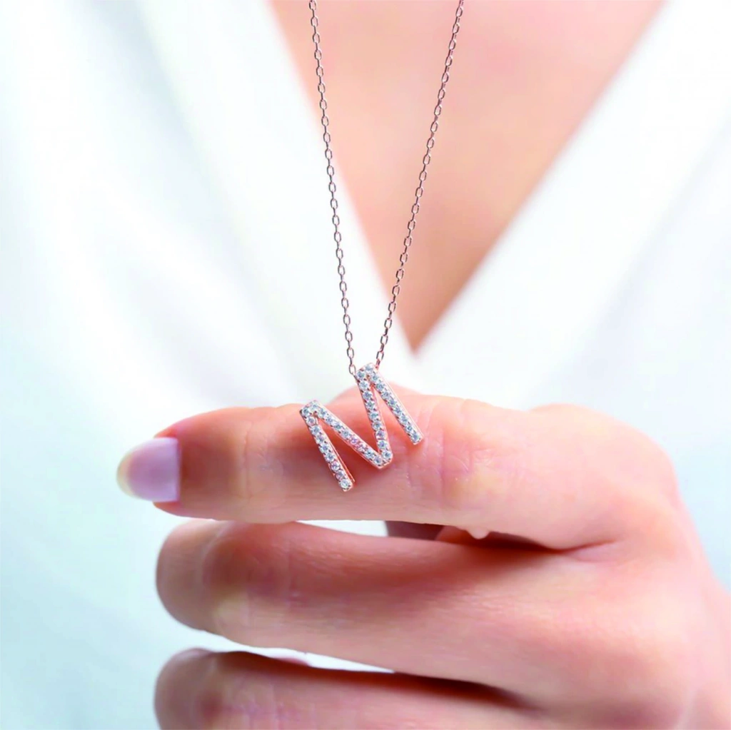 Işıltılı Prizma O Harfi Gümüş Kolye