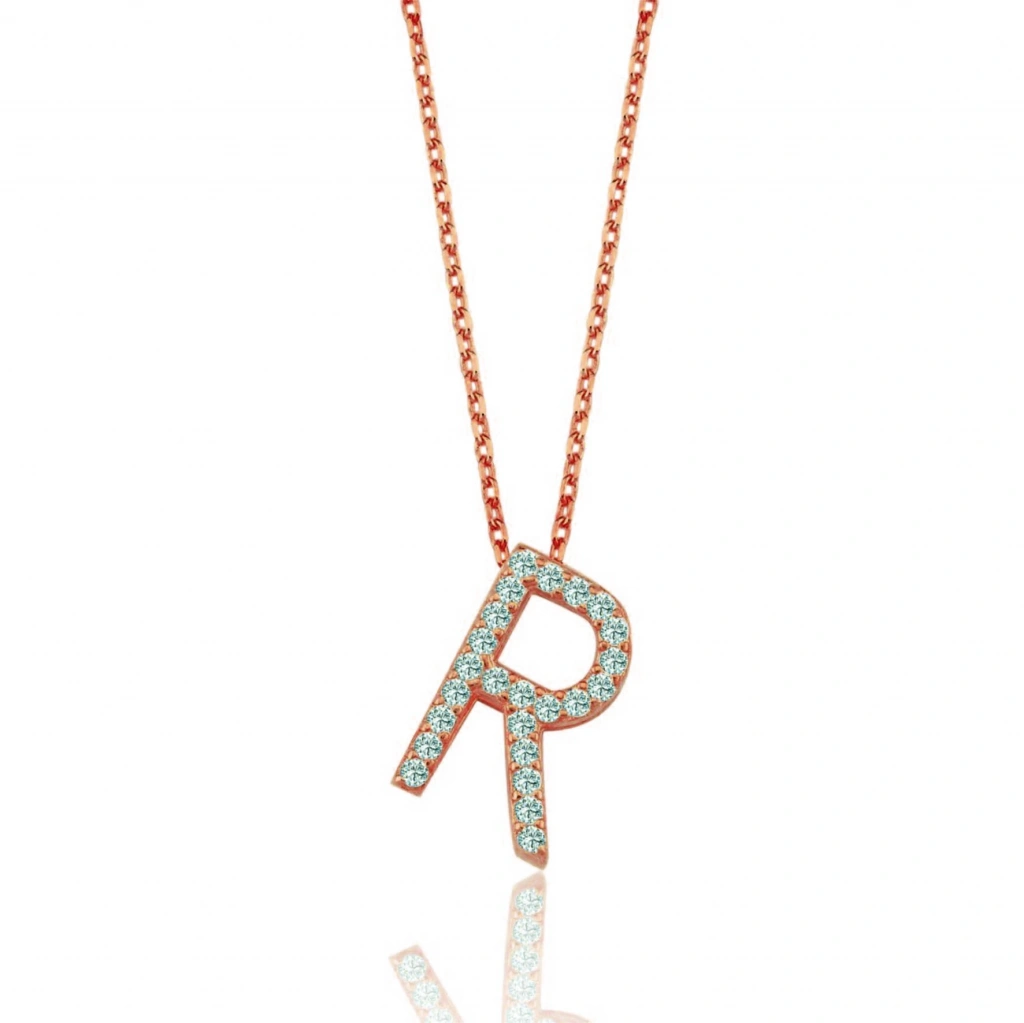 Işıltılı Prizma R Harfi Gümüş Kolye - Rose