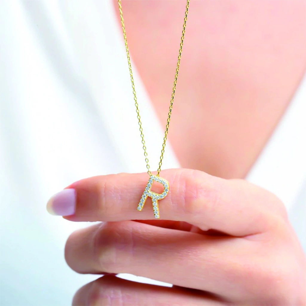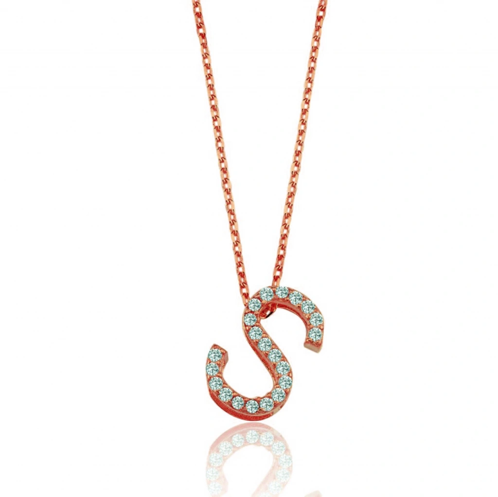 Işıltılı Prizma S Harfi Gümüş Kolye - Rose