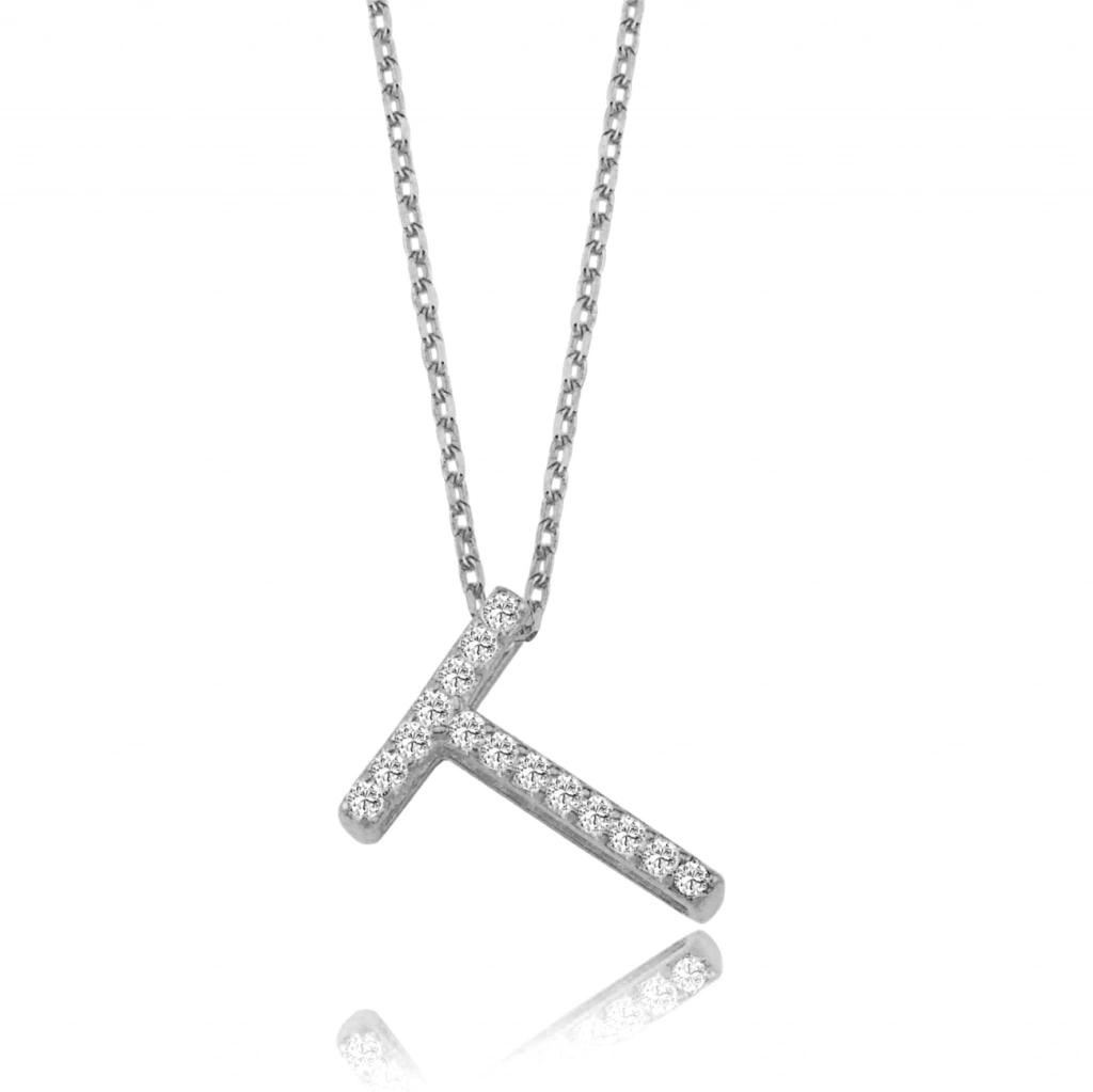 Işıltılı Prizma T Harfi Gümüş Kolye