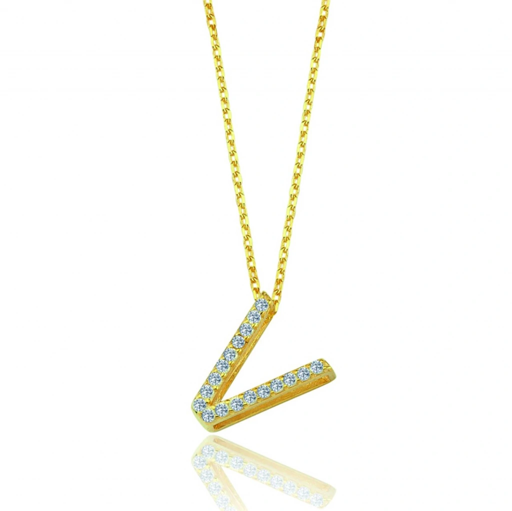 Işıltılı Prizma V Harfi Gümüş Kolye - Altın