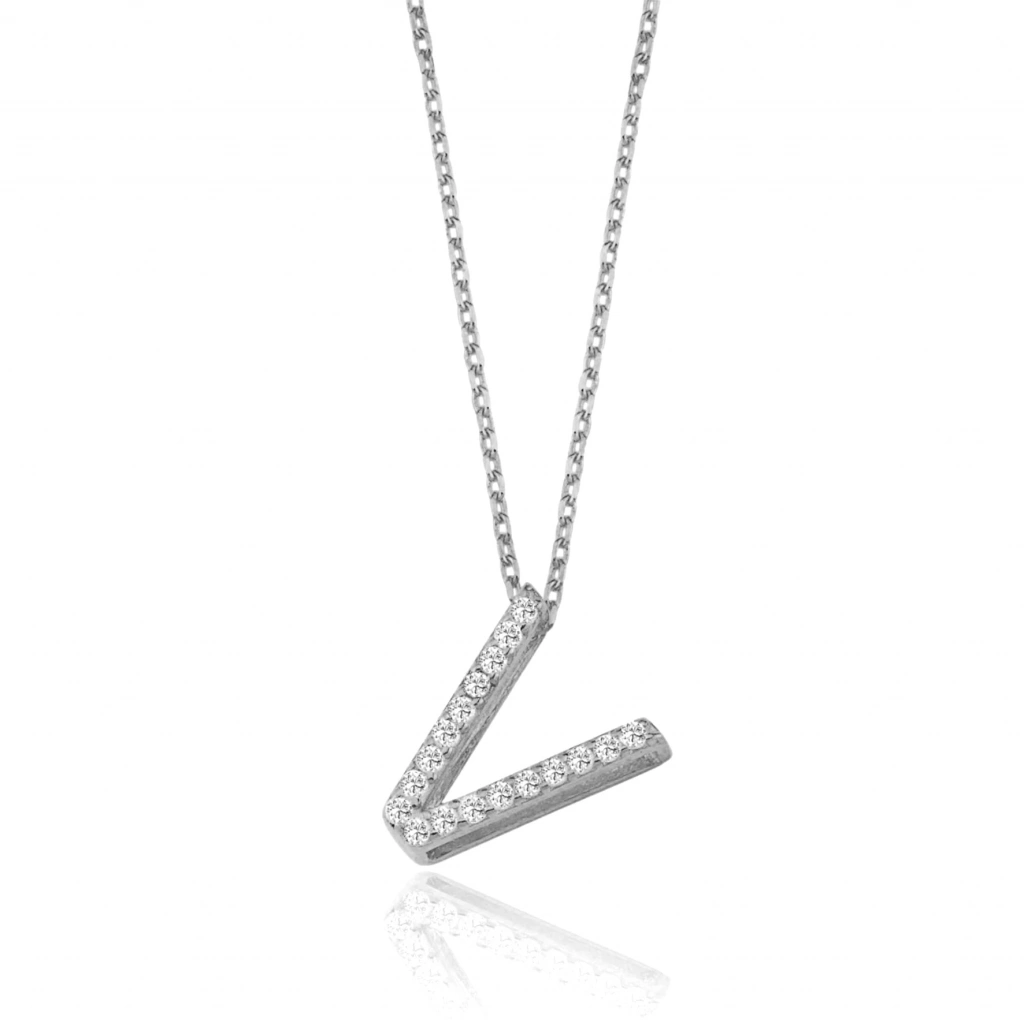 Işıltılı Prizma V Harfi Gümüş Kolye - Gümüş