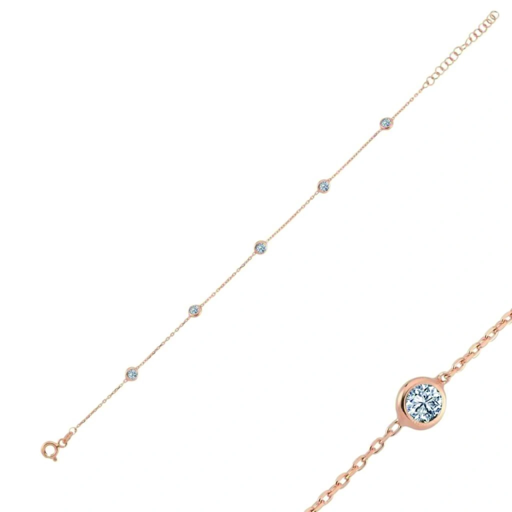 Pırlanta Montür Yağmur Tanesi Işıltılı Gümüş Bileklik - Rose