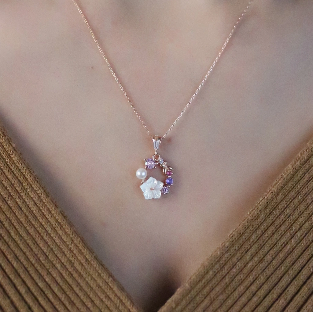 İtalyan Tasarım Soft Çiçekler Flowers Gümüş Kolye