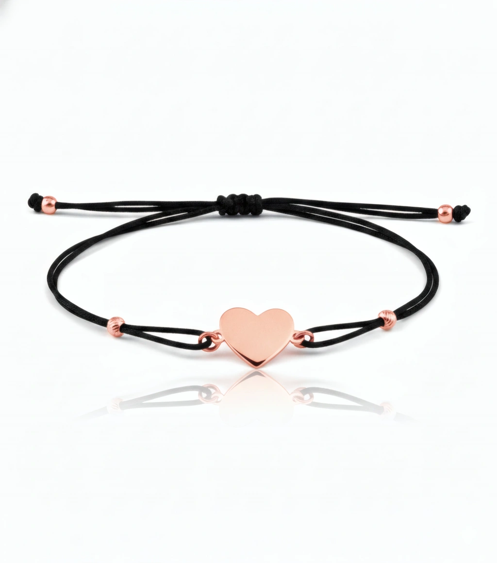 Ayarlanabilir siyah ipi sayesinde her bileğe mükemmel uyum sağlayan bu bileklik, gün boyu rahat bir kullanım sunar. Kalp motifinin her iki yanında yer alan parlak gümüş toplar, tasarıma ekstra bir ışıltı ve hareket katıyor. Sade ve anlamlı duruşuyla günlük kullanım için ideal olmasının yanı sıra, özel anlarınızı taçlandıracak eşsiz bir aksesuar seçeneğidir.