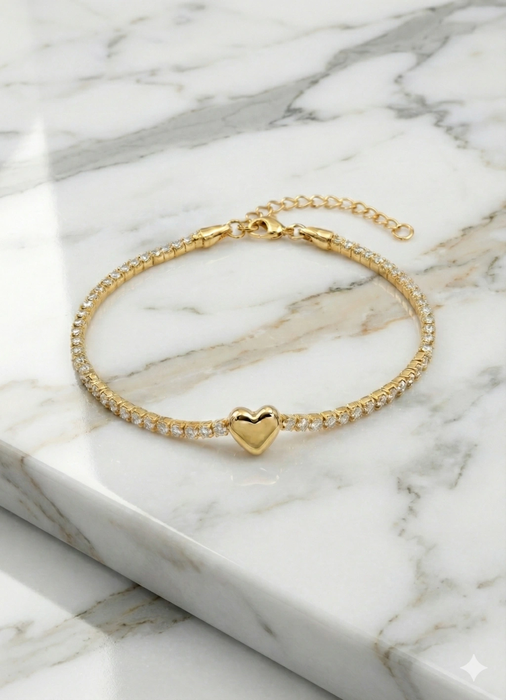 Klasik su yolu tasarımının zamansız şıklığı, romantik bir dokunuşla buluştu. 925 ayar gümüşten üretilen bu zarif bileklik, bileğinizi çepeçevre saran ışıltılı zirkon taşları ve tam merkezindeki parlak, bombeli kalp figürü ile dikkat çekiyor.
