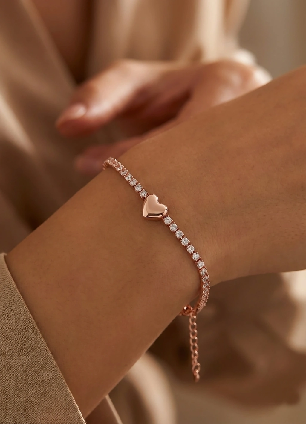 Modern ve Romantik: Rose Gold Kalpli Su Yolu Bileklik