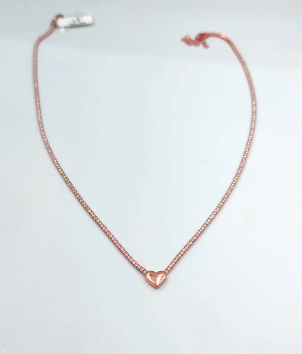 Kalp Suyolu Taşlı Gümüş Kolye - Rose