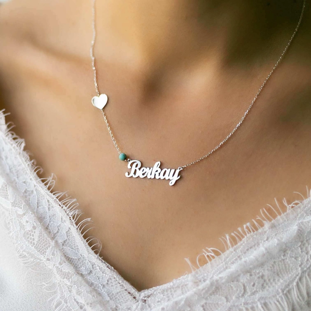 Kalpli İsim Gümüş Kolye