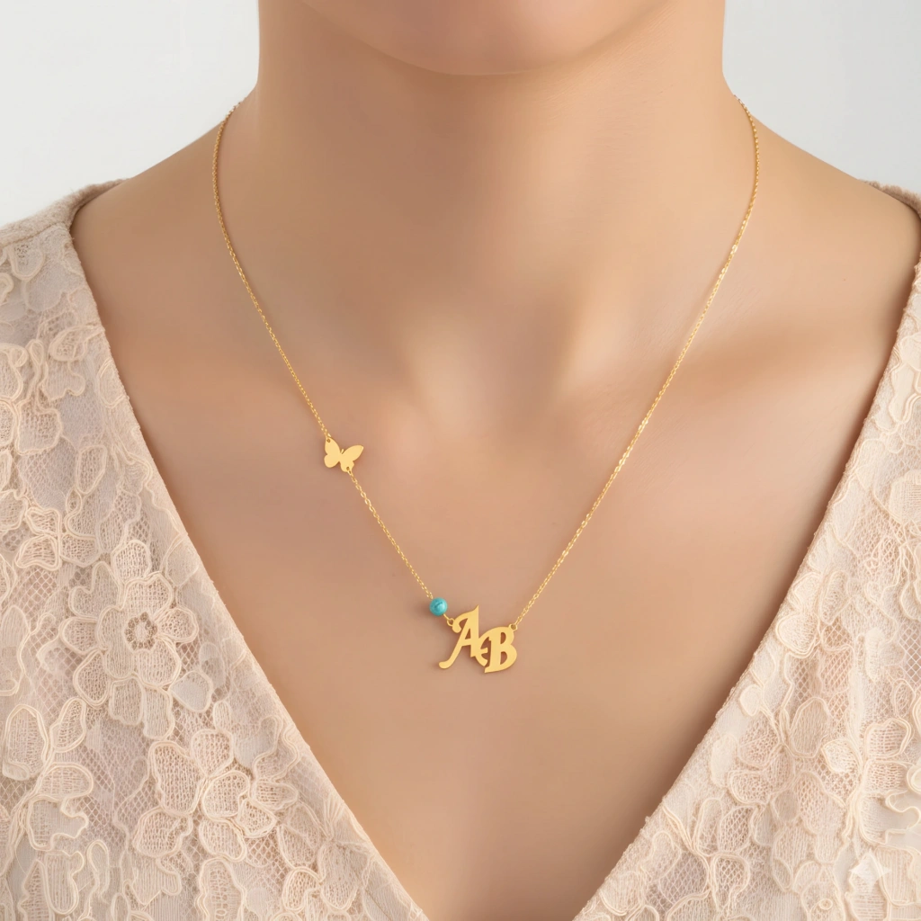 Harfli Kelebek Detaylı Gümüş Kolye - Kişiye Özel Zarafet