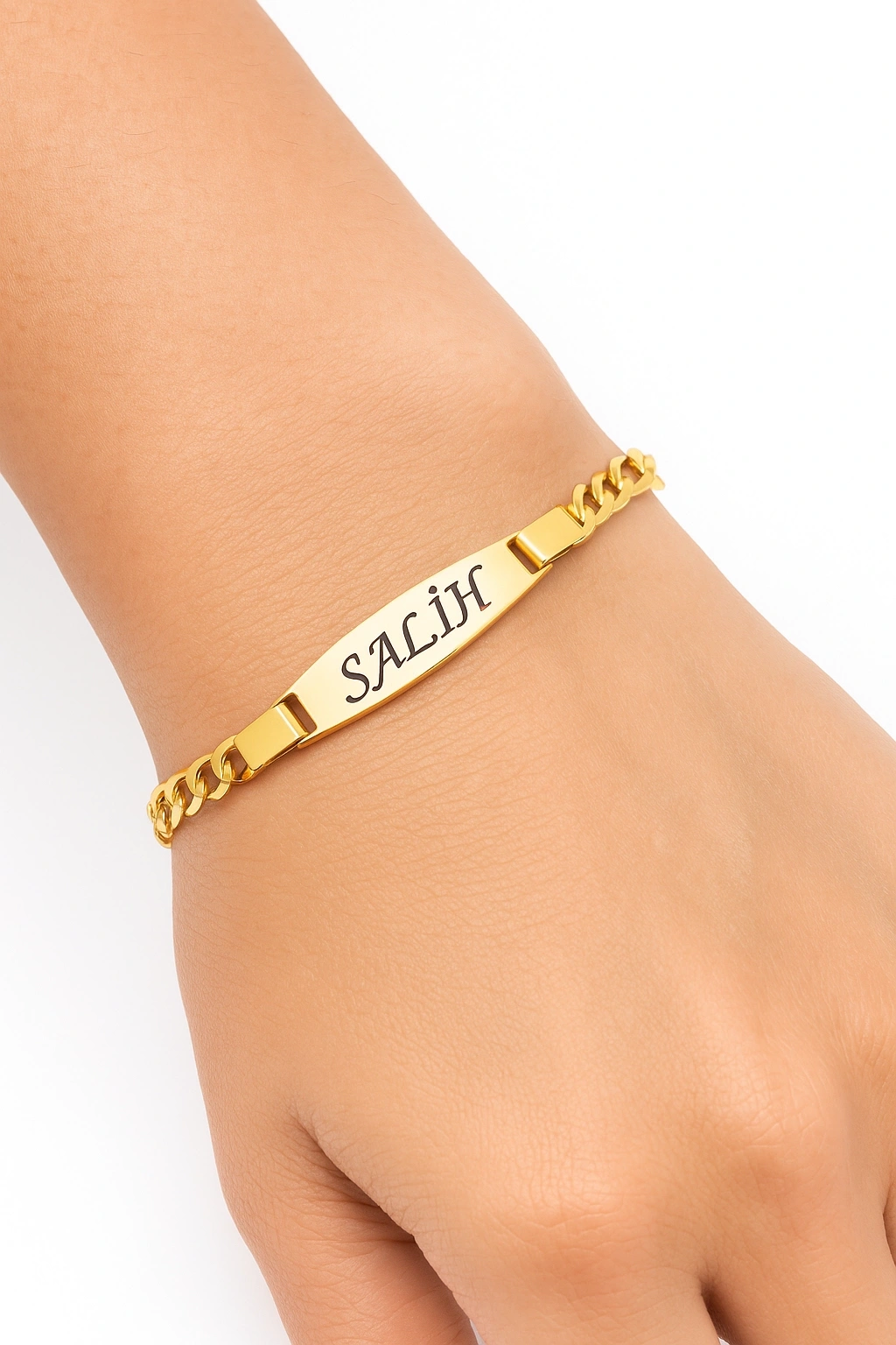 Yeni Tasrım Çelik Kasa Gümüş Harf Bileklik - Altın