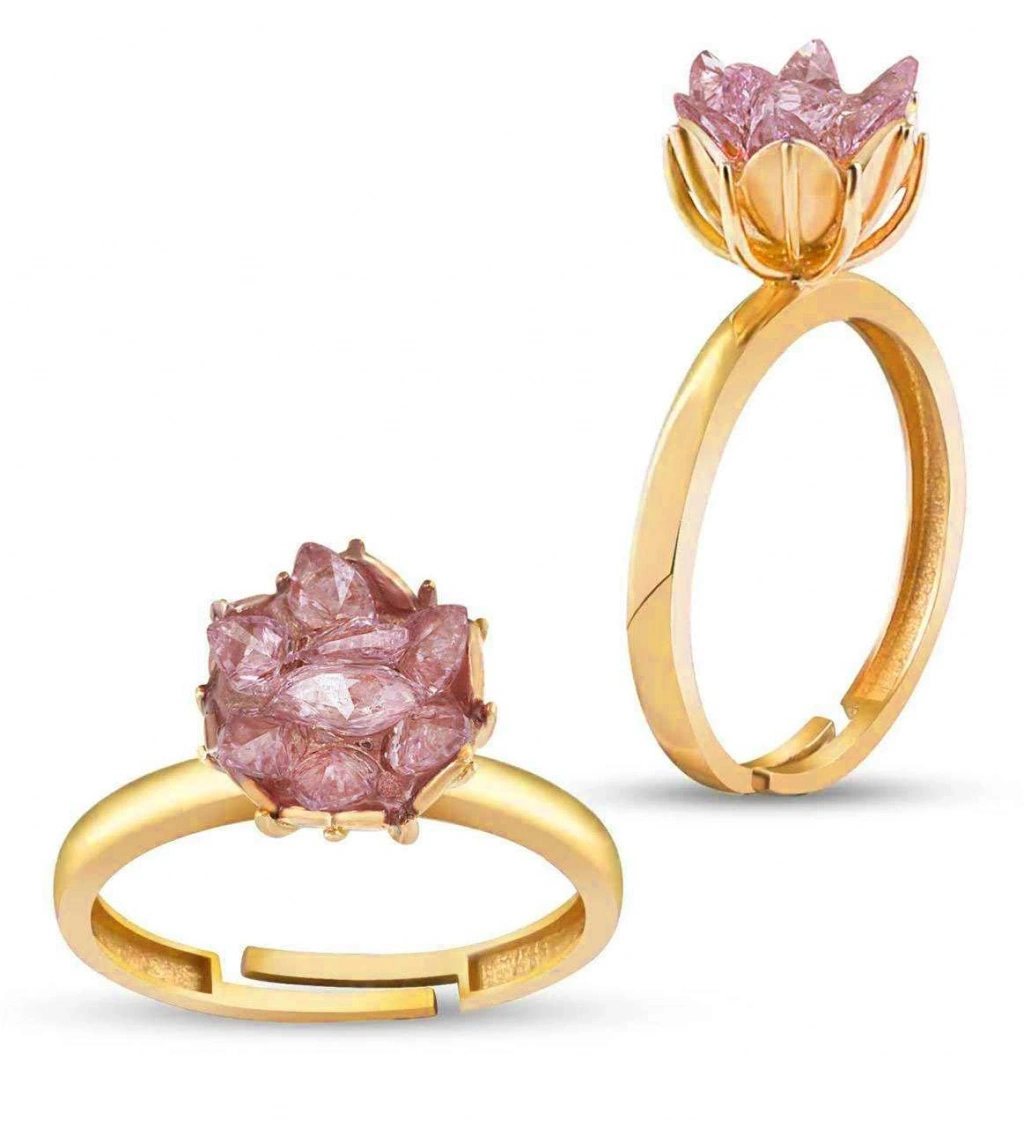 Lotus Çiçeği Gümüş Yüzük - Altın