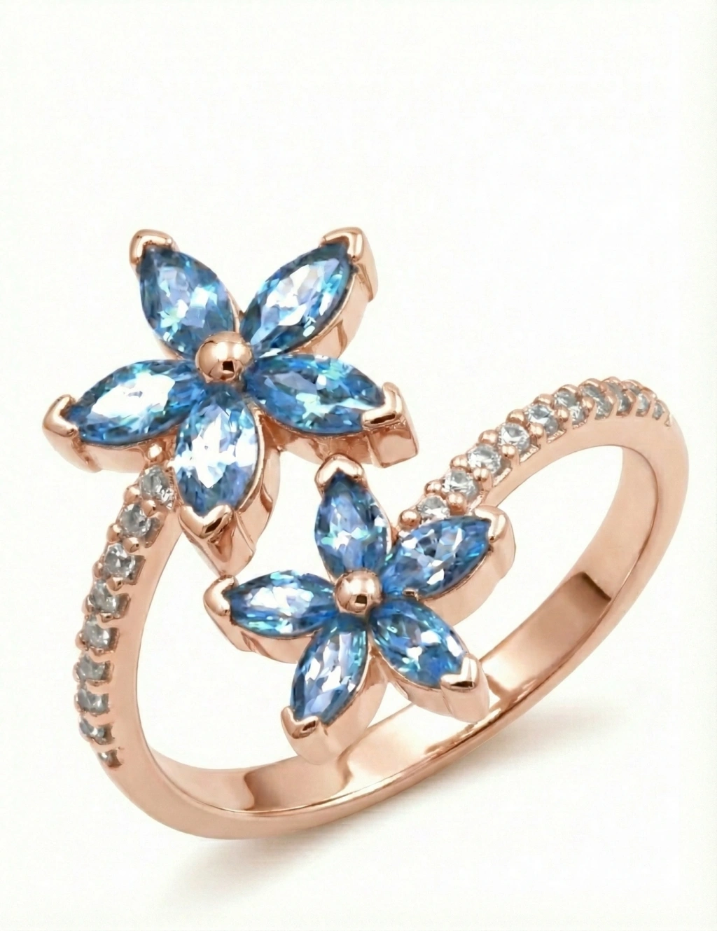 Romantik Işıltı: Rose Gold Mavi Çiçekli Yüzük